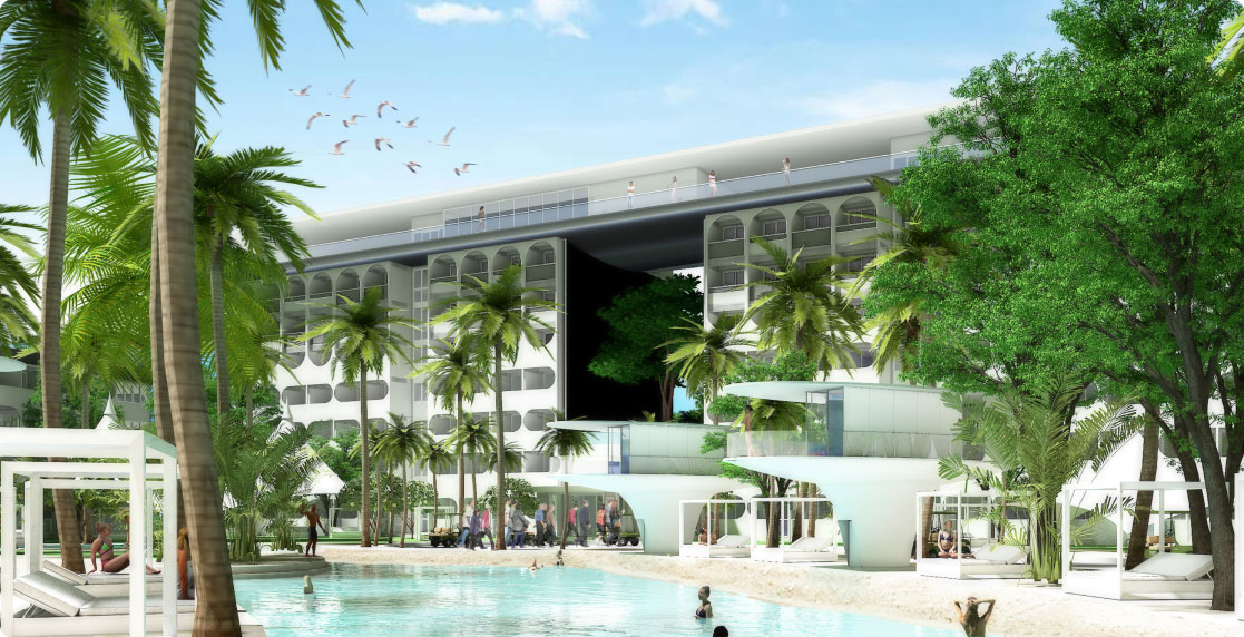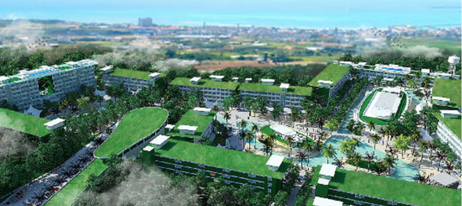 6 hotels, 950 rooms with 4 star quality Mixed-use Accommodation buildings (Hotel licensed) on 62,835 sqm of land, being developed as a car-free green ‘Mega Tourism Village’, including well-being centre, man-made beach and private pools, with all facilities having 4+ Star quality, at 3 Star prices.